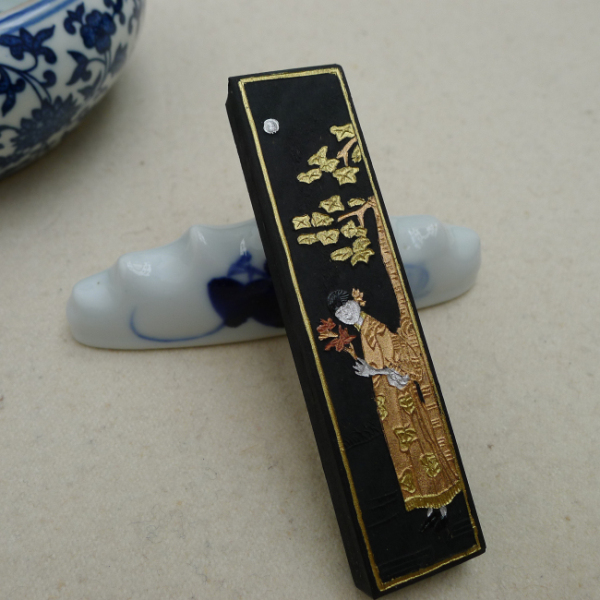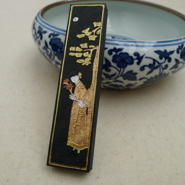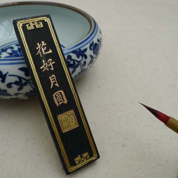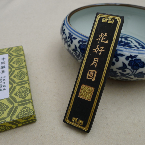1 Two flowers, a good moon and a round pine smoke ink (Hui She Lao Hu Kaiwen ink ingot, ink stick, ink block, four treasures of the study)