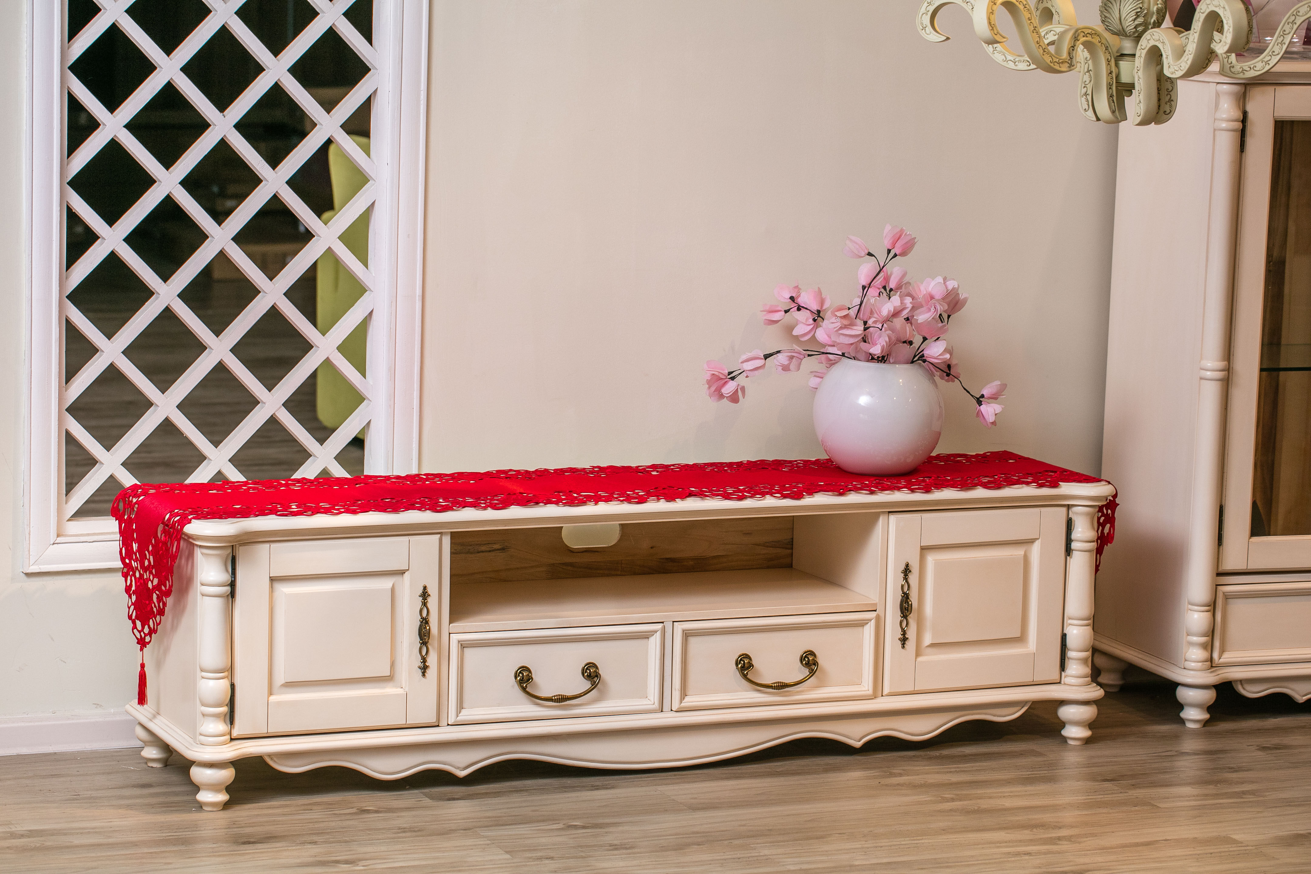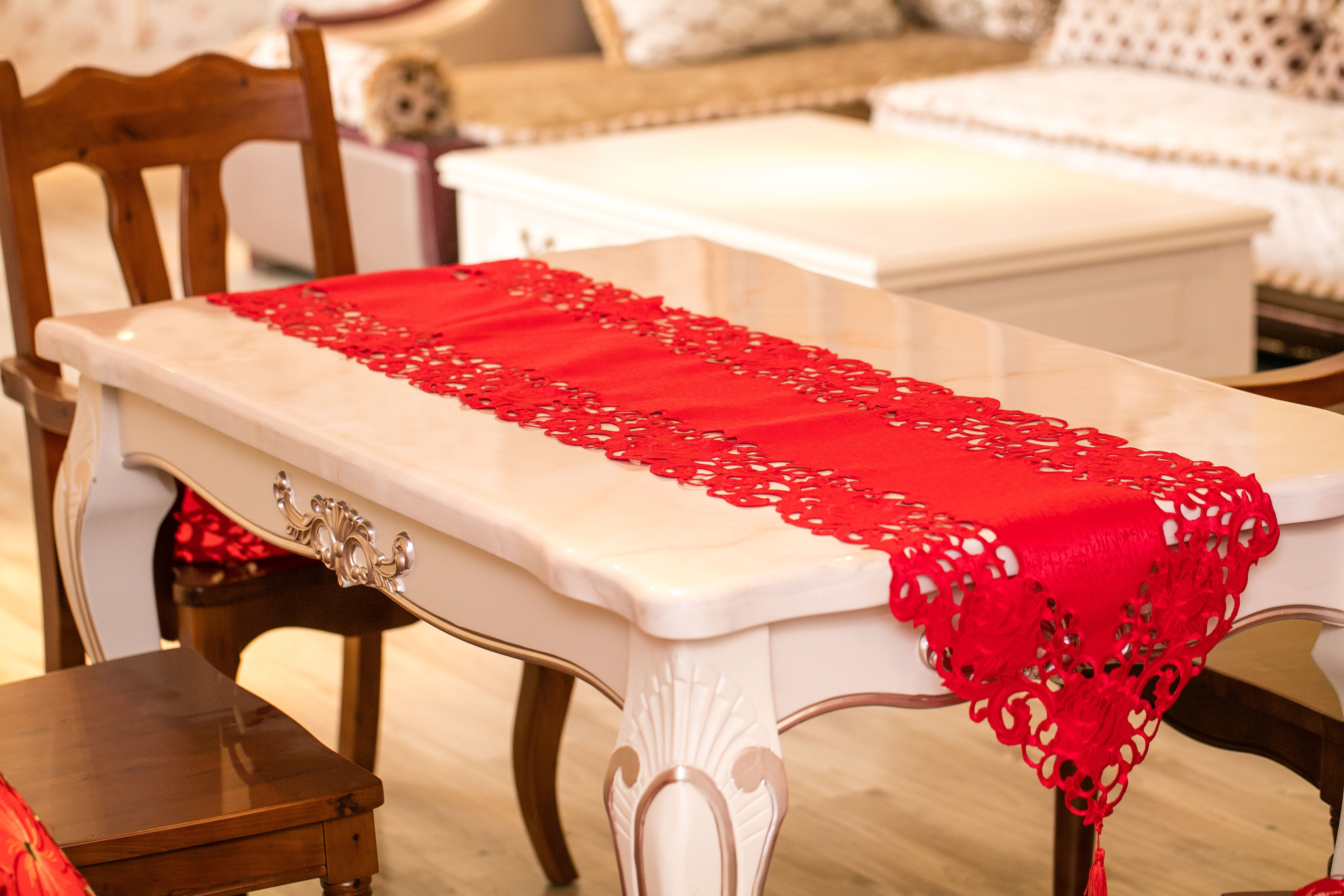 New Chinese coffee table table flag red festive wedding wedding living room dining table TV cabinet flag tea table tea table tea art