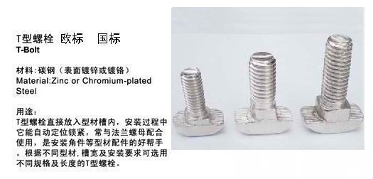 Aluminum profile accessories European standard t-bolt T-type screw rod M6M8M102030404045 galvanized flange nut
