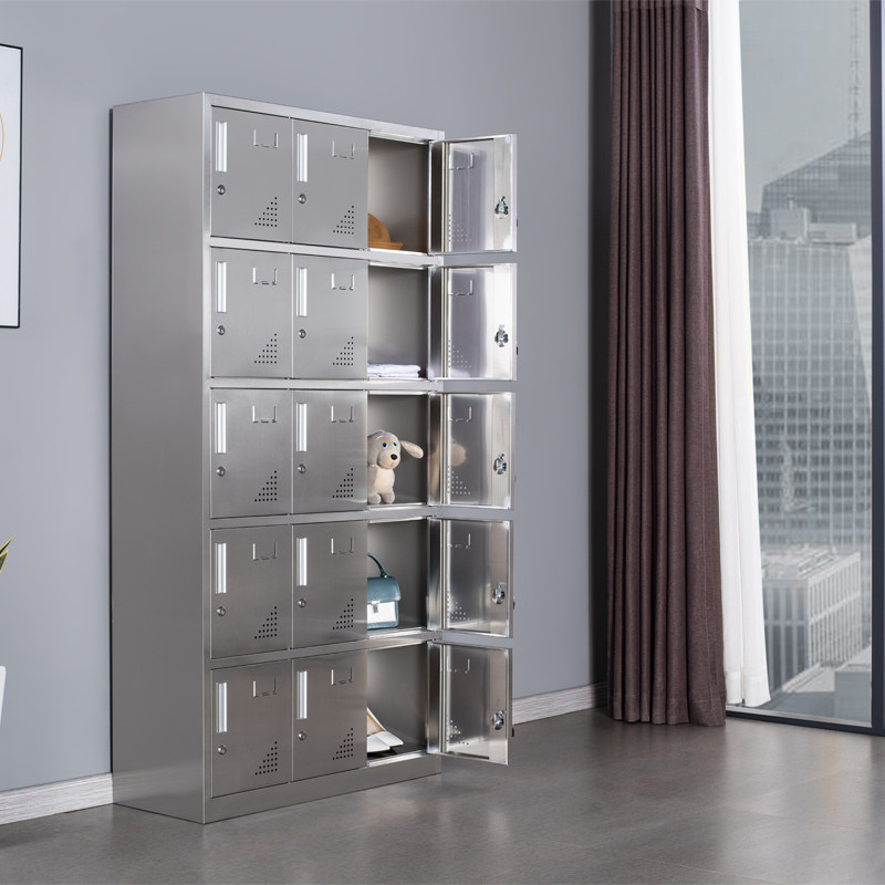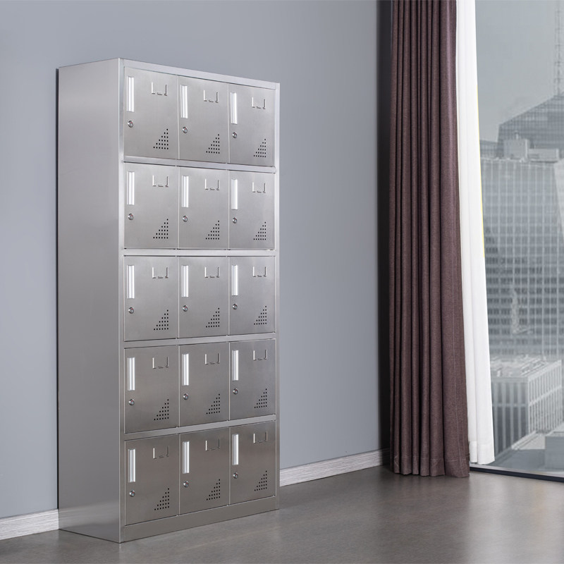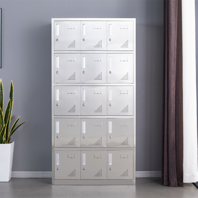 Stainless steel 15-door staff with lock multi-door storage cabinet factory shoe cabinet cloakers 304 multi-grid cupboard cabinet