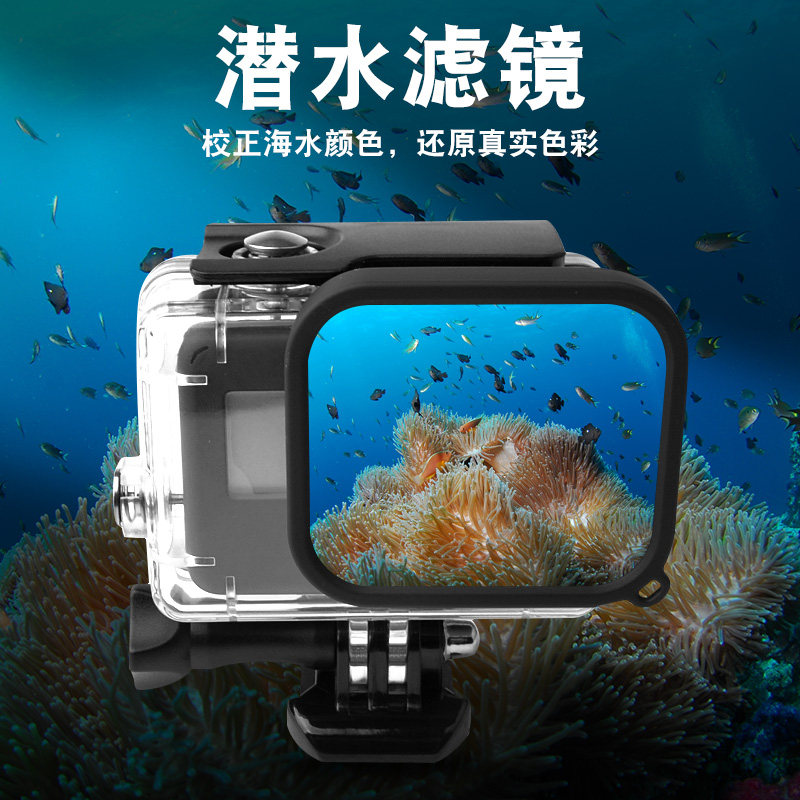Waterproof case, 1 red filter (applicable to GoPro7 6 5 waterproof case in the picture) Waterproof case (direct installation type), suitable for GoPro7 6 5black camera waterproof