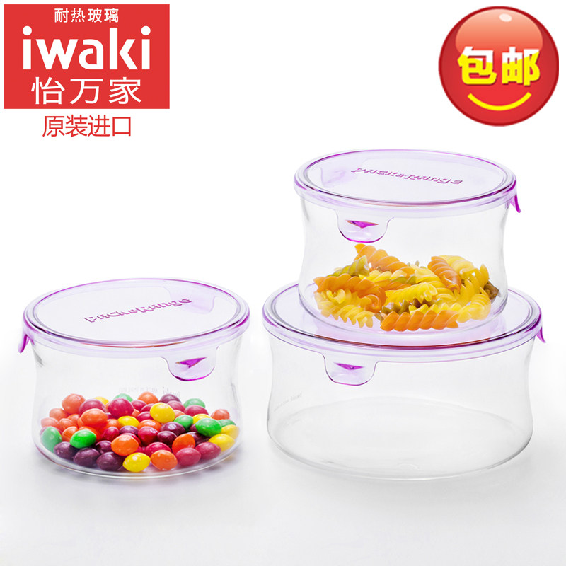 Japan iwaki Yiwanjia imported heat-resistant glass crisper lunch box microwave bowl three-piece set