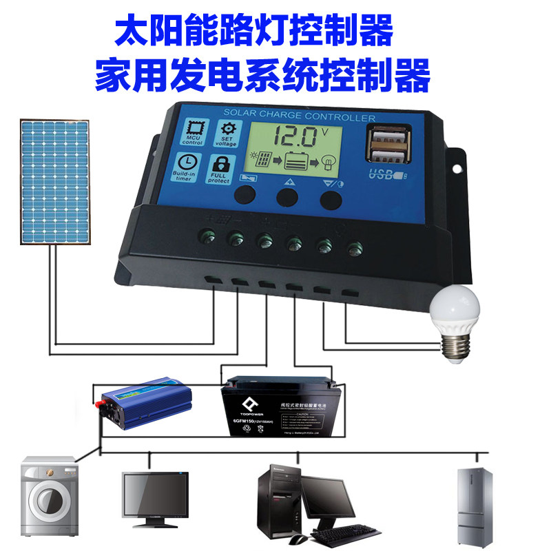 12V24V10A when photovoltaic solar controller generates LCD digital voltage lightning protection mobile phone USB charging