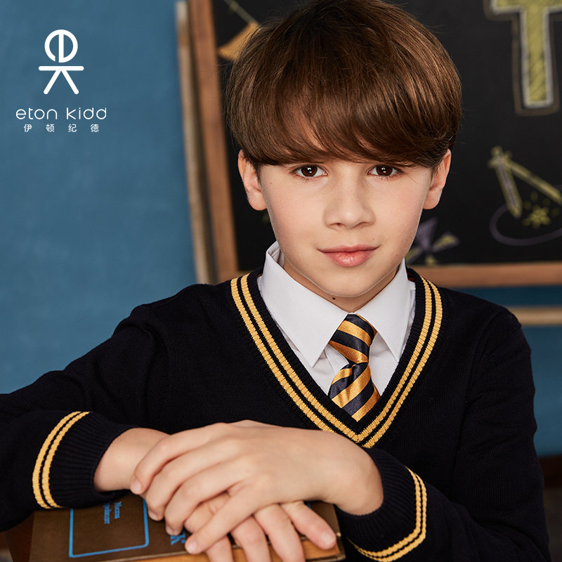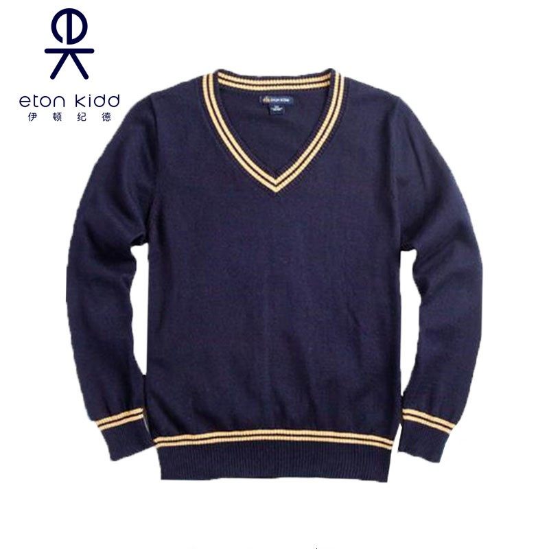 Eaton Guild school uniforms children's hooded sweater male and female child-knitted sweatshirt pure cotton V neckline clothes for autumn 09M101-Taobao