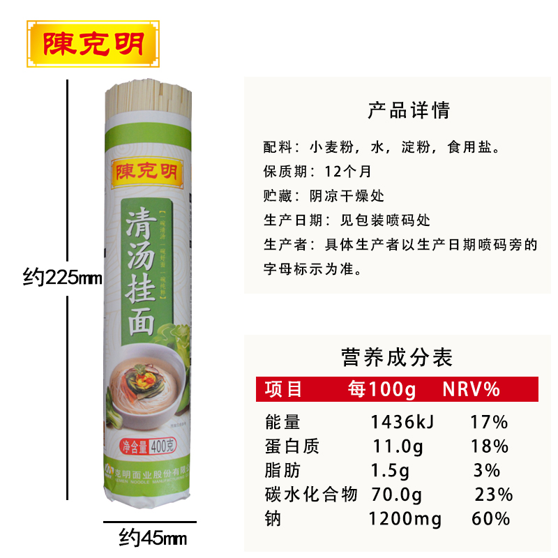Chen Keming Noodles in Soup 400g Chen Keming Noodles in soup Thin flat 2mm noodles in soup