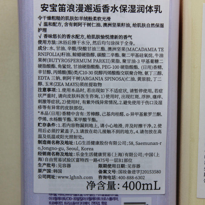 Korean original LG ON body lotion happy breeze perfume body lotion rose body lotion moisturizing and smooth