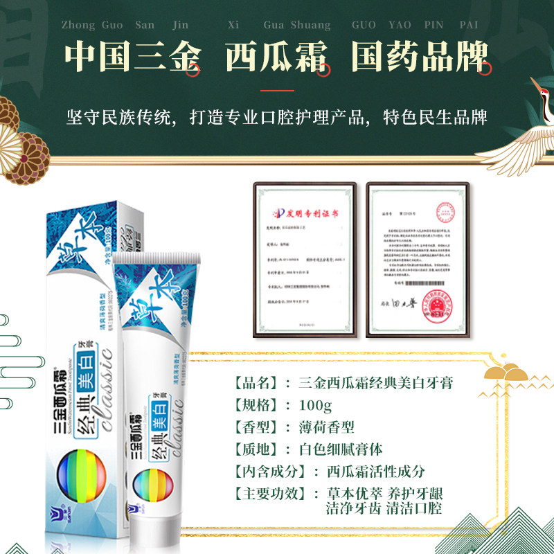 Sanjin watermelon cream toothpaste to remove yellow tartar Bright white to remove smoke stains to remove bad breath Fresh breath to eliminate Yan family affordable package