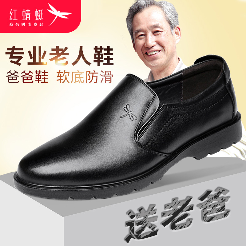Red Dragonfly Daddy's shoes Spring leisure middle - aged men's shoes soft - solid middle - aged men's shoes