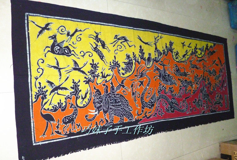 Yunnan Guizhou Ethnic Batik Painting Handicraft Home Hotel Hotel Decoration Batik Wall Hanging Door Curtain Table Cloth