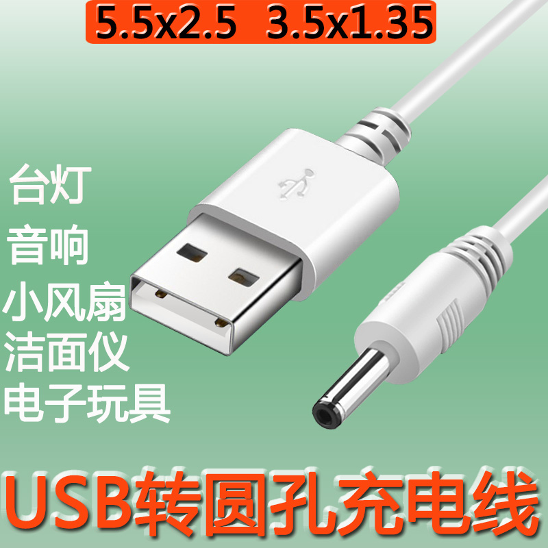 Round hole lamp charging cable 3 5mm round head foreo Luna cleansing instrument lunamini2 face washing instrument universal usb to dc5v audio electric toothbrush small fan flashlight power supply