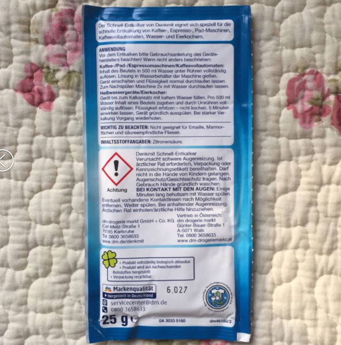 Good to use 6 bags German safe kettle with water scale tea scale coffee scale cleaning to descale 25g1 bag