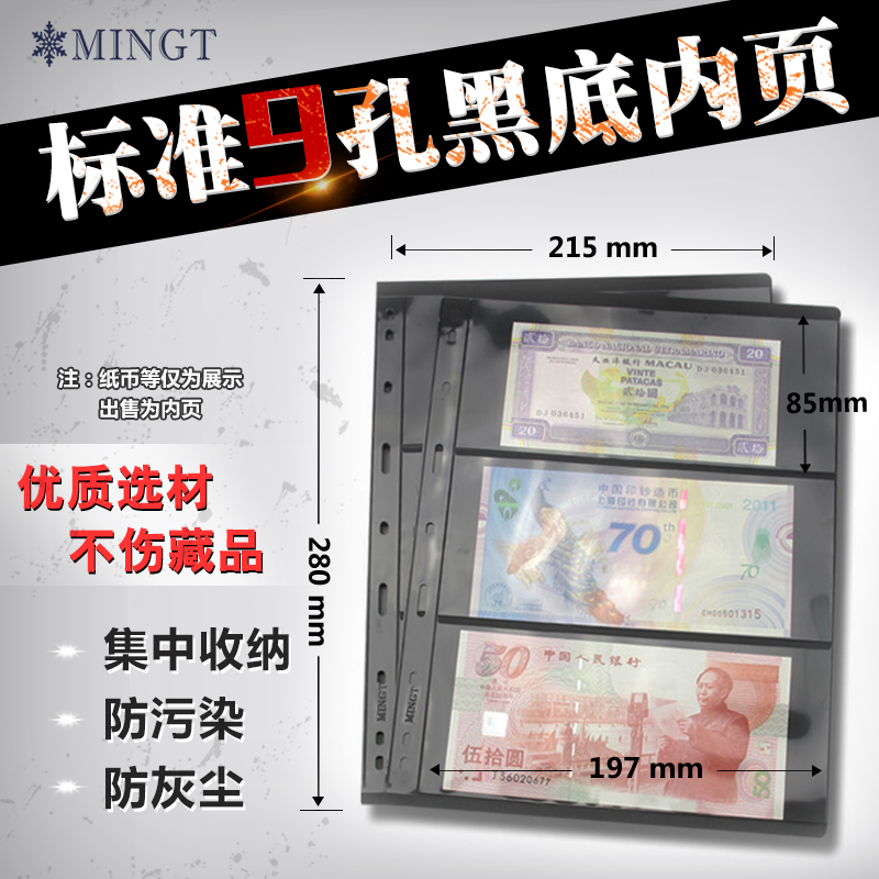 PCCB Mintai Universal Nine-hole Stamp Set Mailleaf inner page inserts 3 lines Black bottom bifacial banknote album loose-leaf