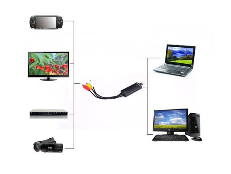 fpv aerial camera wireless image transmission one 1-way USB surveillance audio and video capture card for laptops