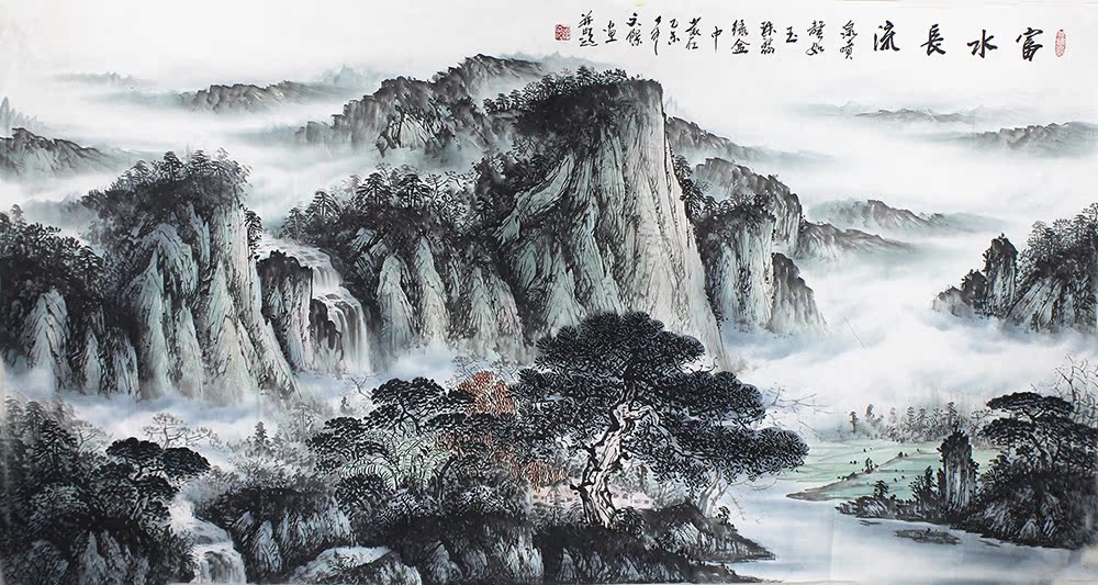 Pure Hand Painted Six Feet Country Painting Landscape Painting Calligraphy Painting Drawing Room Feng Shui Painting Manuscript Rich Water Long Flow Office Decoration Painting-Taobao