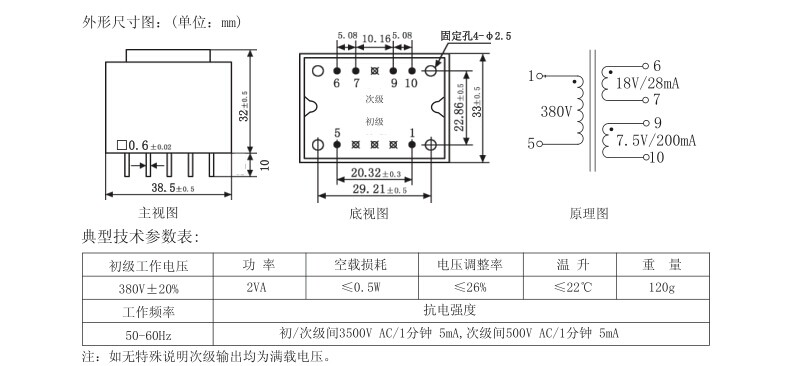 Yao Hua PE3515D-I 3 5VA 380V 18V0 18V0 5VA7 5VA 5VA epoxy potting needle transformer