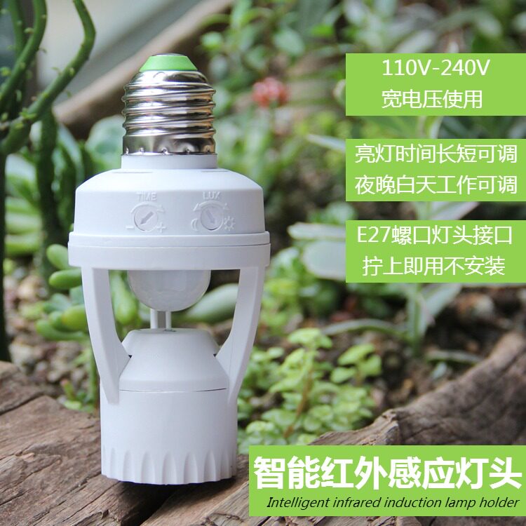 Intelligent infrared human body induction switch E27 screw mouth AC220V lamp holder Domestic building to pick up LED bulb