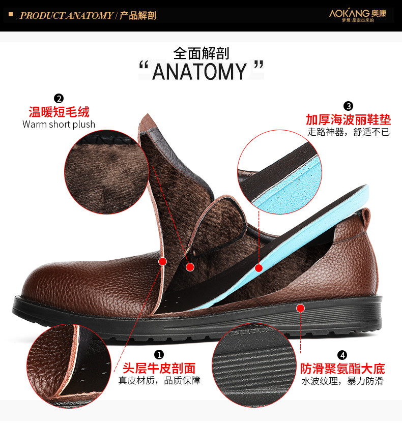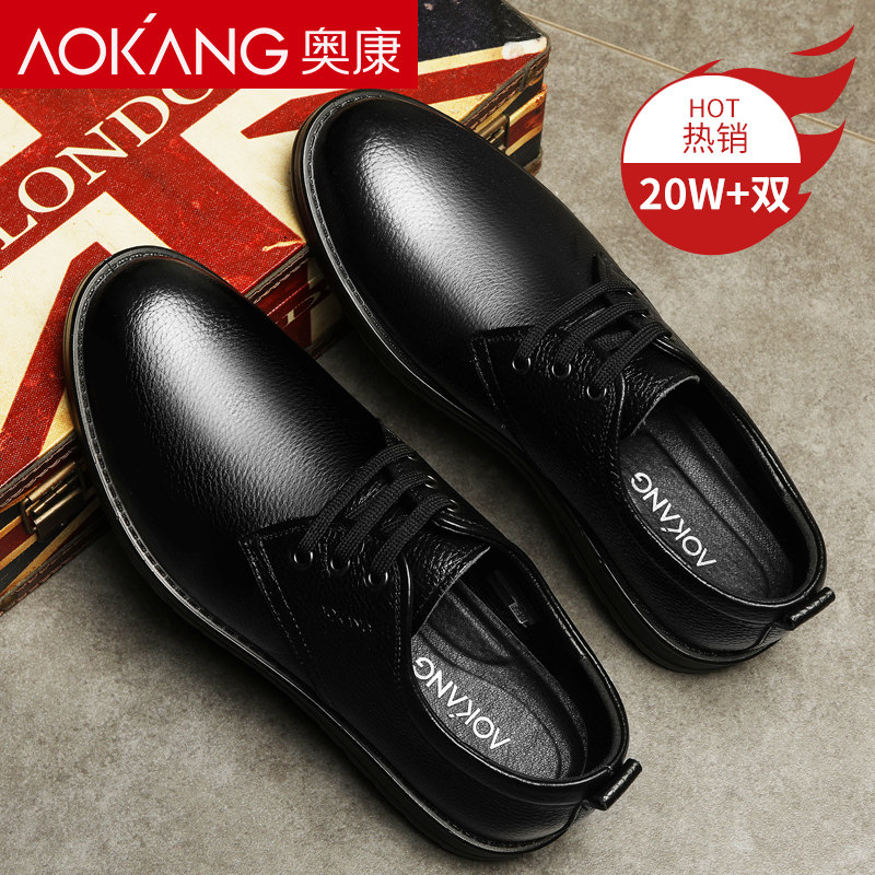 Okong men's shoes spring and autumn daddy shoes business men casual leather shoes men's real leather soft soles increase shoes