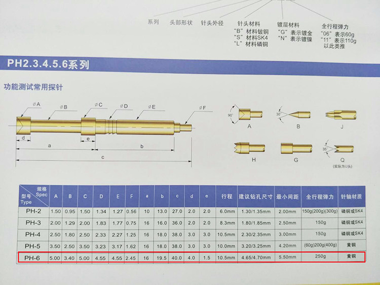 All-in-one probe PH-6H 8 0 head whole copper overcurrent PH-H8 0mm spring thimble