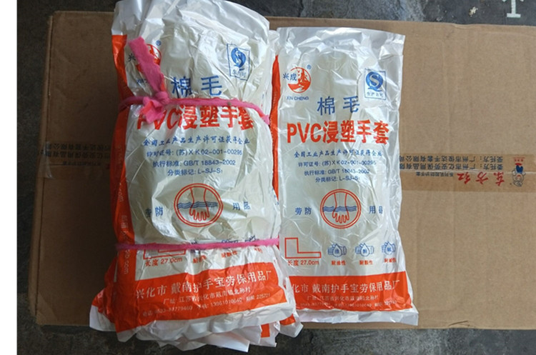 Xingcheng 28CM cotton wool-soaked plastic gloves PVC rubber resistant to acid and alkali resistant rubber anti-wear and anti-slip industry-Taobao