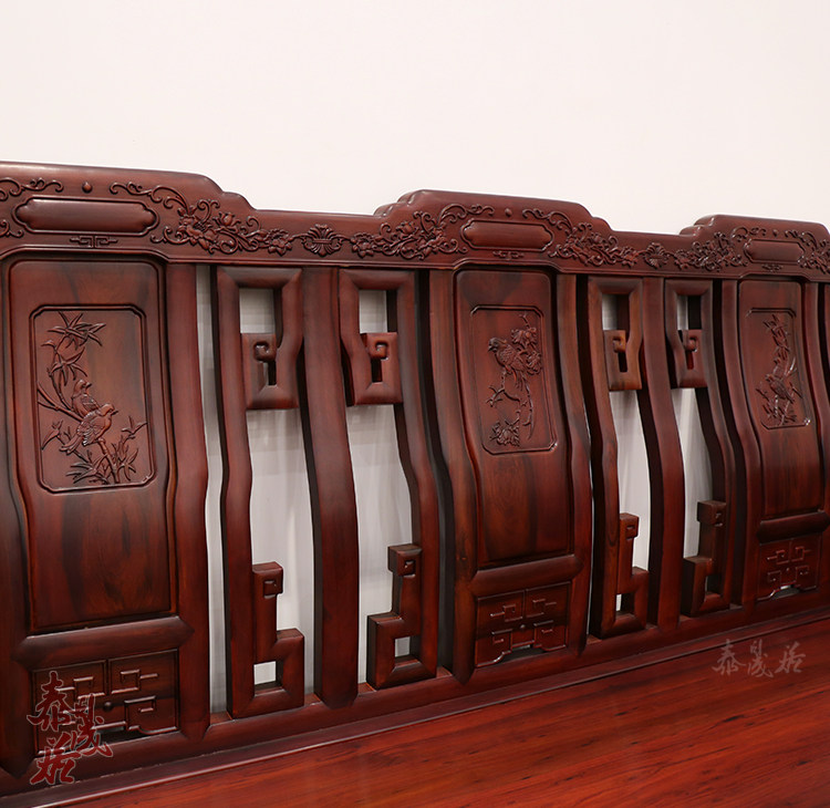 Redwood furniture living room Chinese solid wood Ming Qing classical small household type antique sofa combined South American acid branch sofa
