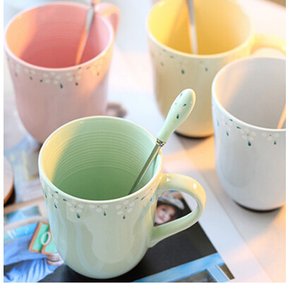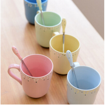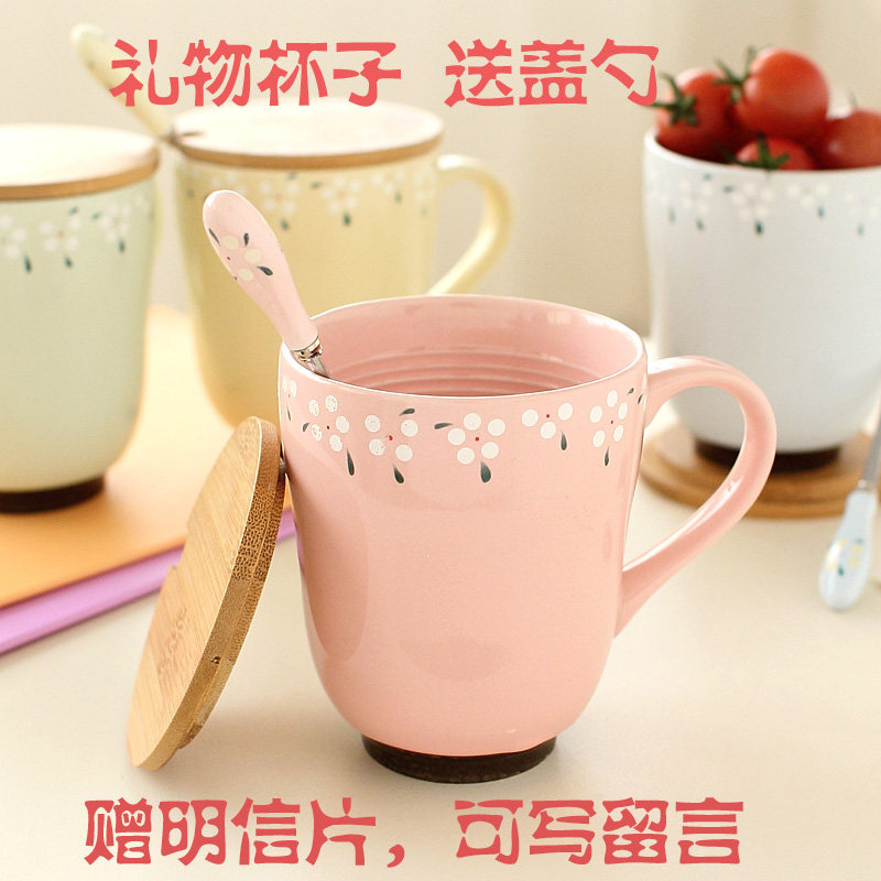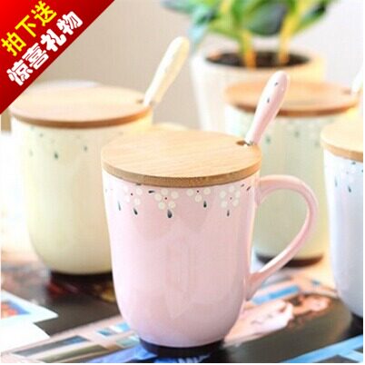 Zakka ceramic cup cup pastoral wind broken flower cup with lid spoon couple coffee milk cup 2 pieces
