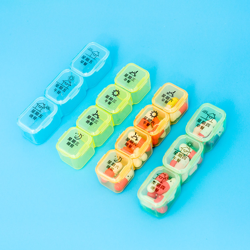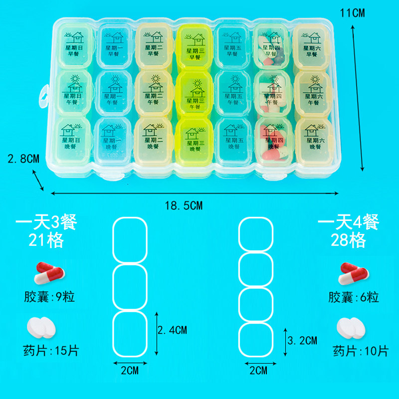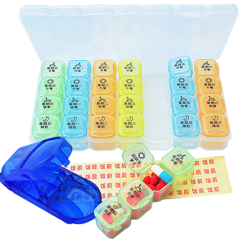 A week of medicine boxes new rounded corners 7 days 28 Gg week kit portable health box Sub-medicine containing transparent box