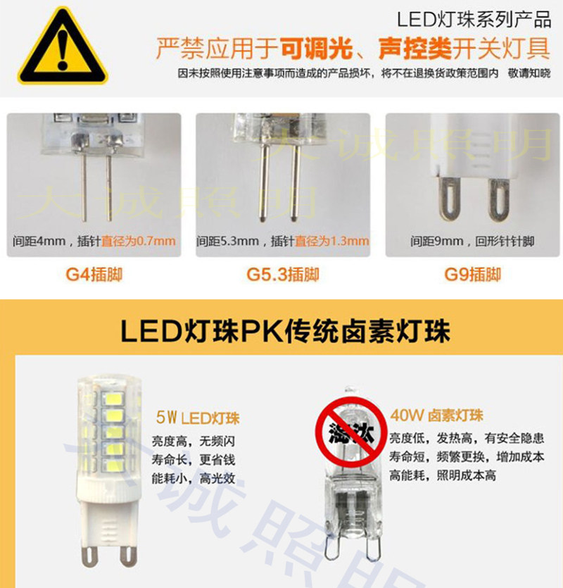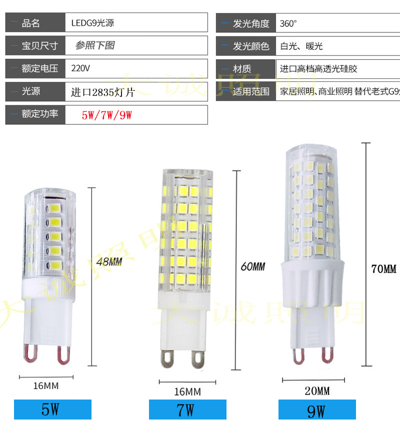 LED G9 lamp bead high brightness energy saving plug bulb G9 halogen lamp bead crystal lamp wall lamp too lamp switch to light source