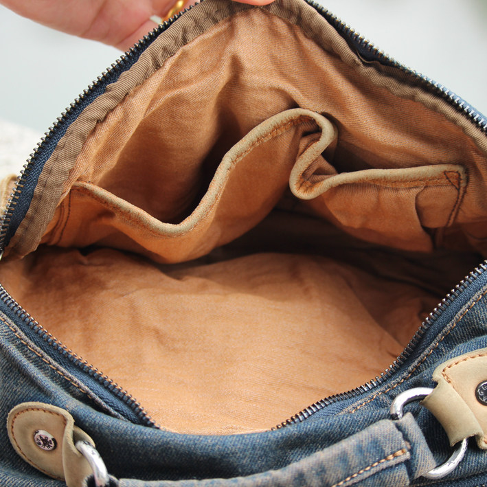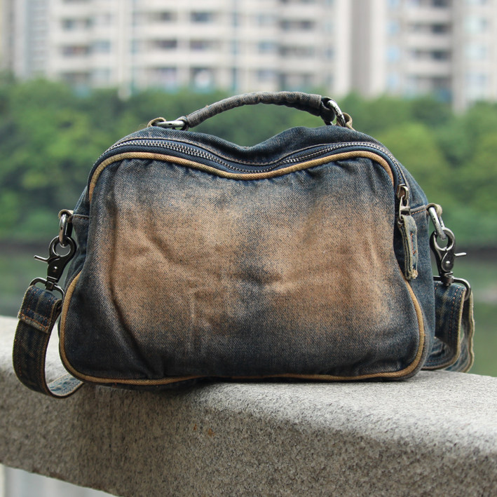 Han Edition Retro Women Denim Bag Slanted Satchel Lading Shoulder Casual Shoulder Bag Multifunction Makeup Bag Small Square Bag Tide