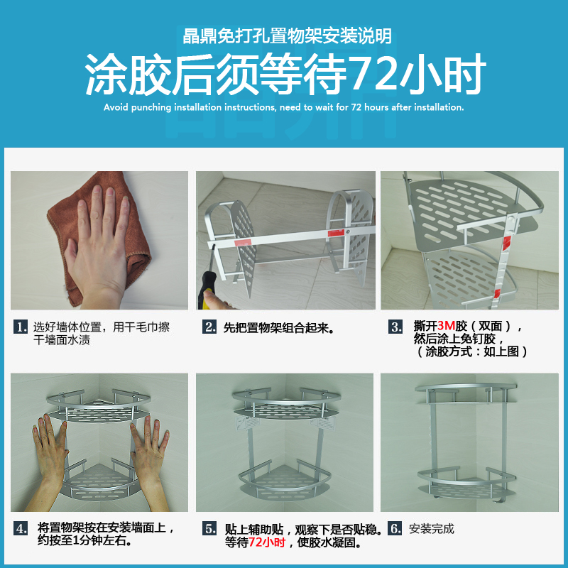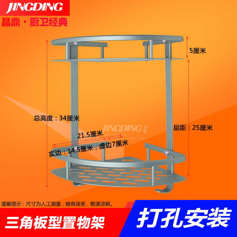 Crystal tripod nail-free punch-free space aluminum double-layer triangle basket bathroom corner rack corner rack rack punching installation