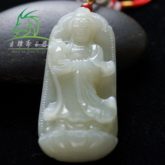 Xiao Yazhai Natural Jade Xinjiang and Tian Baiyu Deep work Solid Guanyin pendant pendant male and female Pendant Necklace