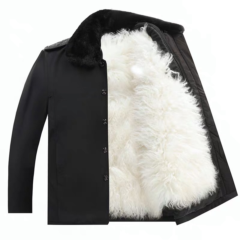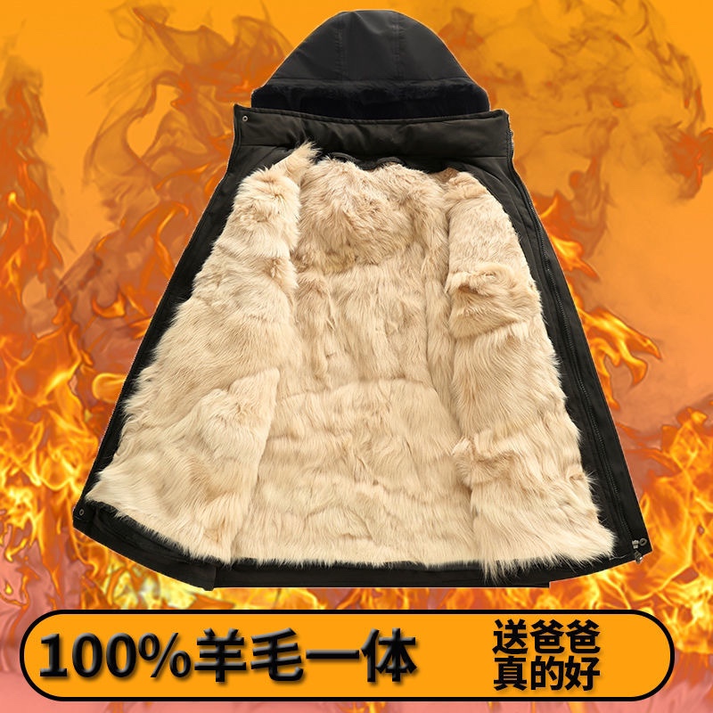 Sheep fur Pike clothing cotton-padded jacket male fur one middle-aged and elderly warm thick real wool hooded leather jacket father