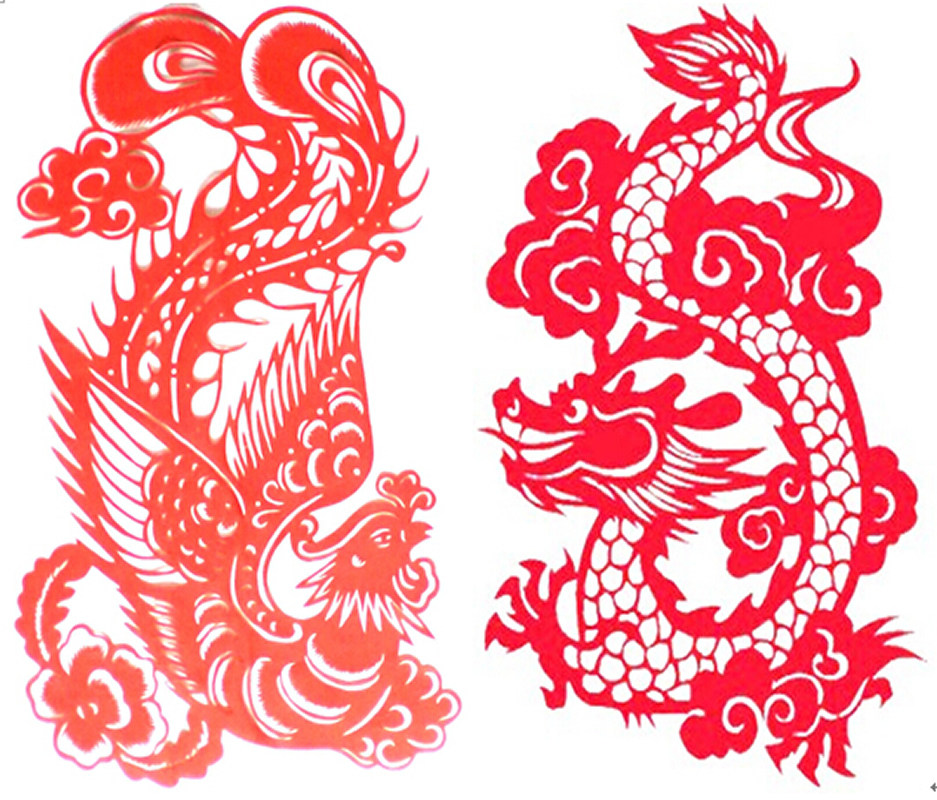 Dragon Phoenix Big Number Cut Paper Pure Handmade Wedding Adornment Window Flowers China Traditional Culture Gift Dragon Phoenix