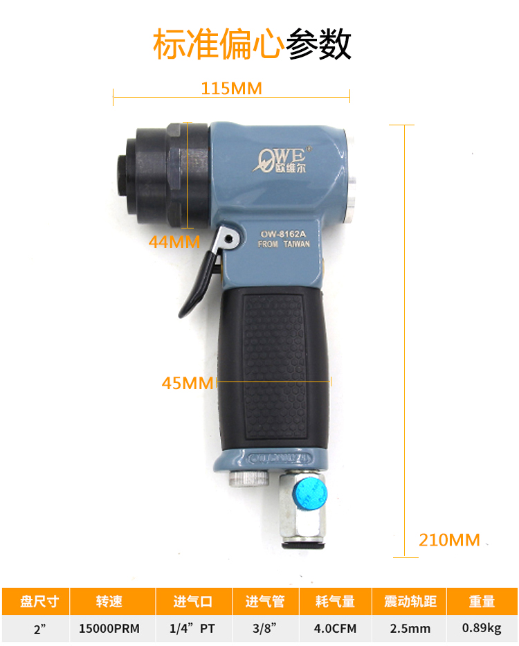 Auville OW-8162A 90 ° ELBOW PNEUMATIC SANDPAPER Grinding Mill Polished Grinding machine