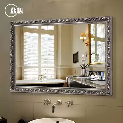 Zhongxiang European-style retro bathroom mirror Solid wood powder room mirror Wall-mounted decorative mirror Bathroom mirror bathroom mirror large mirror