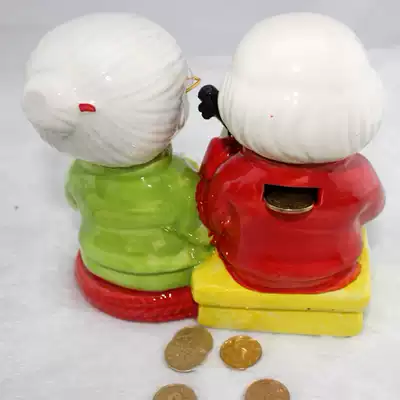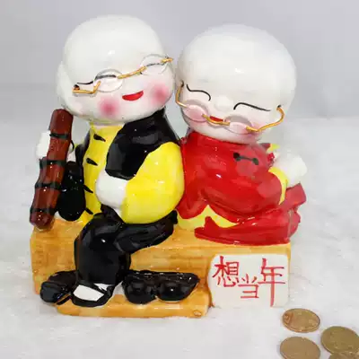 Long-term old father-in-law mother-in-law ceramic piggy bank decoration Wedding decoration Old man couple decoration wedding gift