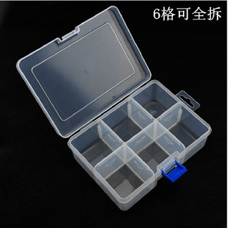 Thickened Large Number 6 lattice transparent plastic case Plastic containing box finishing box Parts box First decorated box storage box