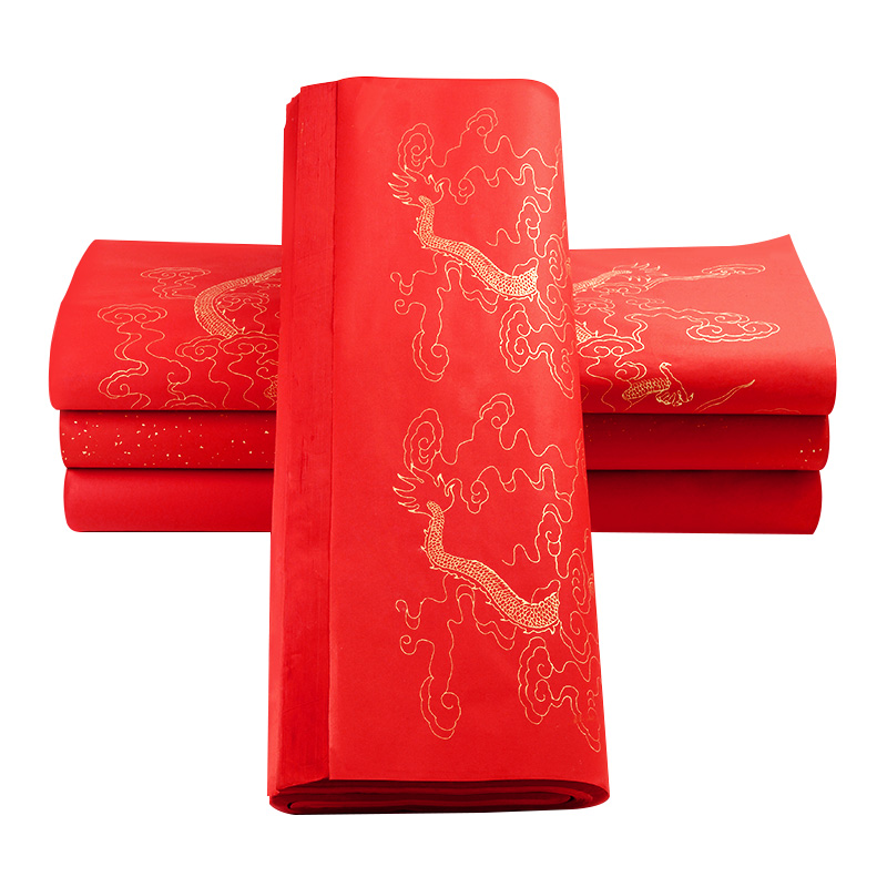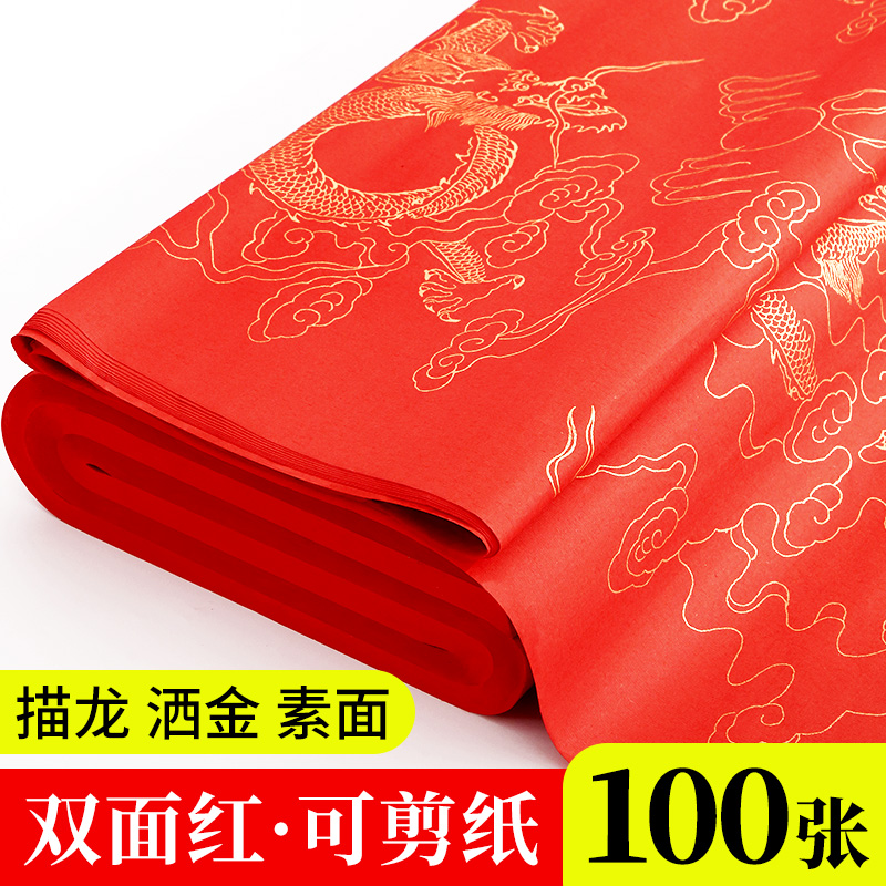 Large Mountain Peel Paper Bifacial Red Xuan Paper Large Zhang Thickened Cut Paper Special Sprinkle Gold Cold Gold Large Red Whole Zhang Xuan Paper Fu Shou Six Feet Four Feet Open Blank Spring Couplets Paper Couplets 100 Zhang Wholesale