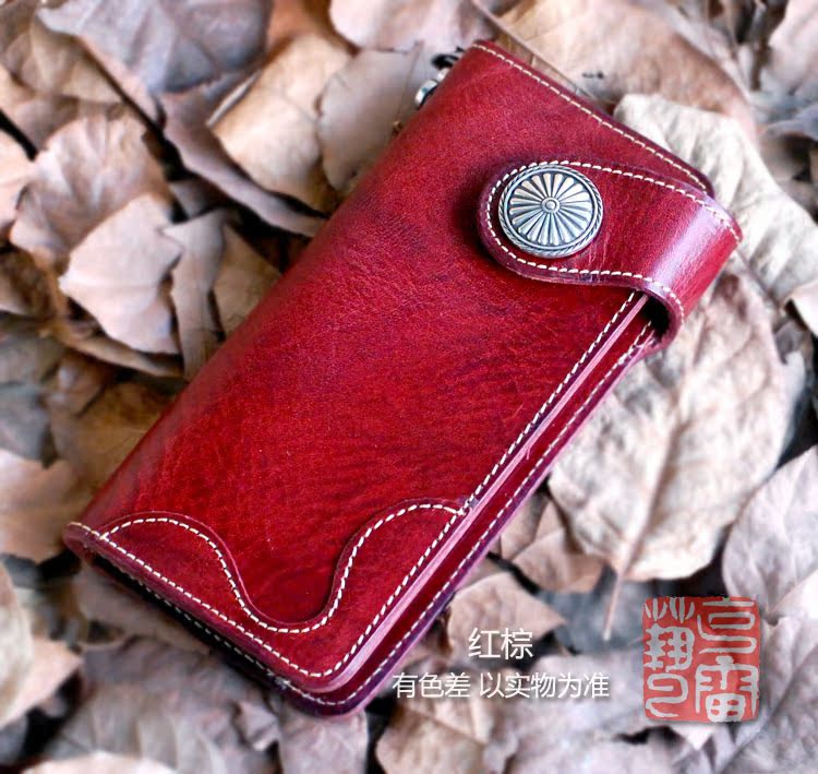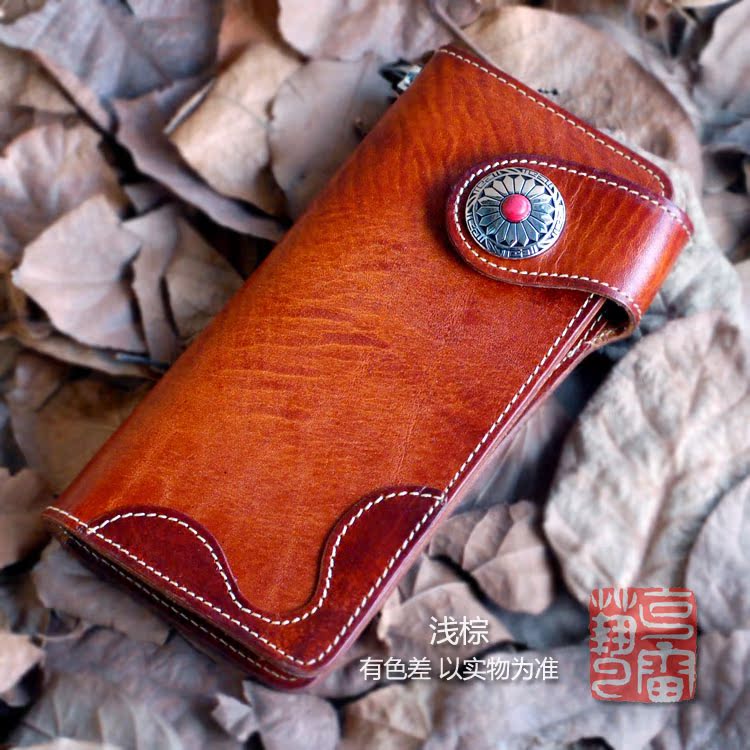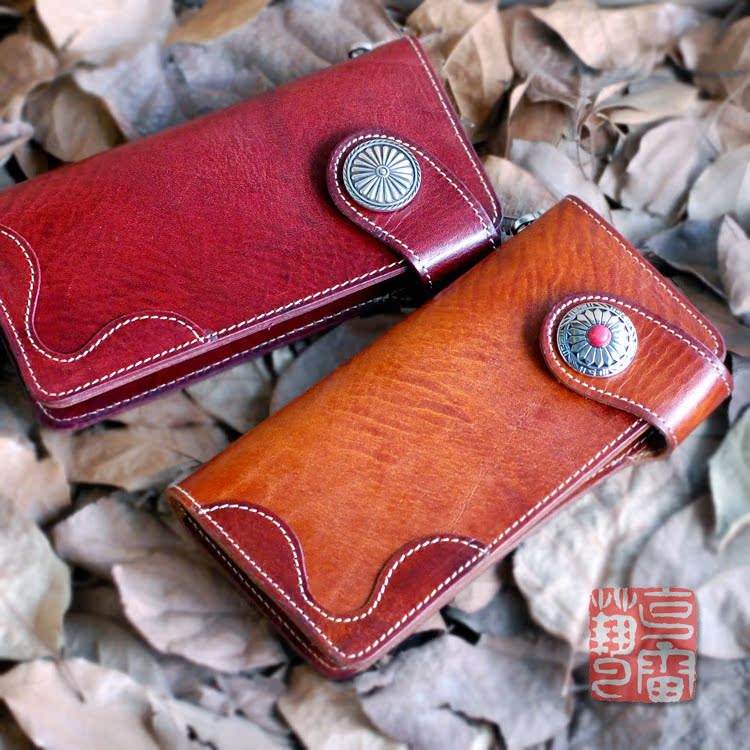 Casual New Youth Pure Color Genuine Leather Tanning Leather Head Layer Bull Leather Wallet Tide Long Version Money Clip Handmade Japan Wallet