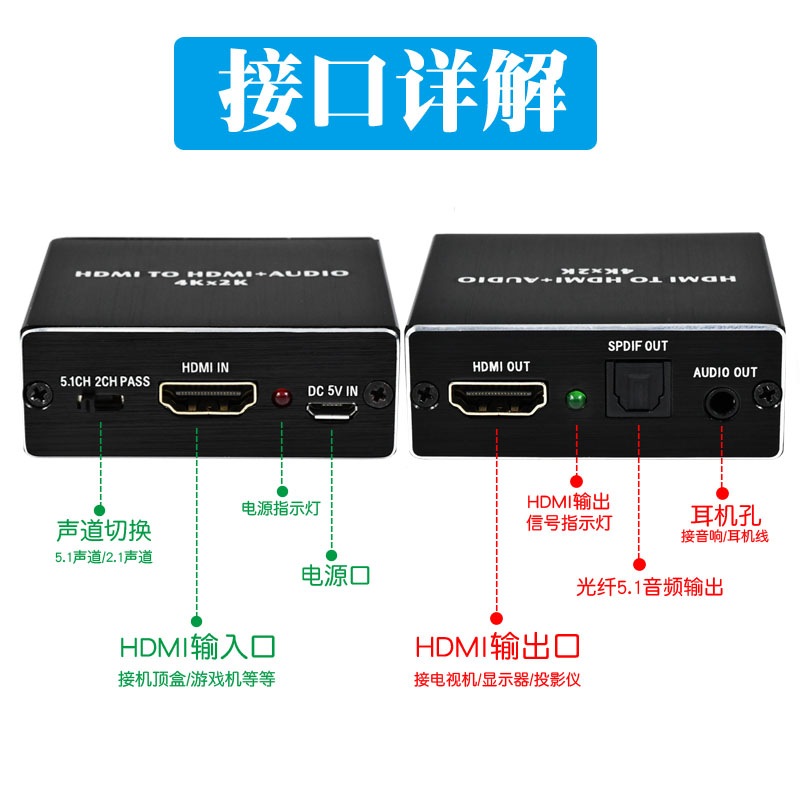 HDMI Audio Splitter to 3 5 Headphone holes 5 1 Fiber optic Digital audio Converter supports 4K Ultra HD 3D