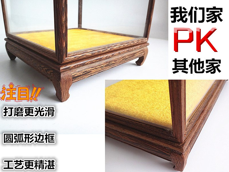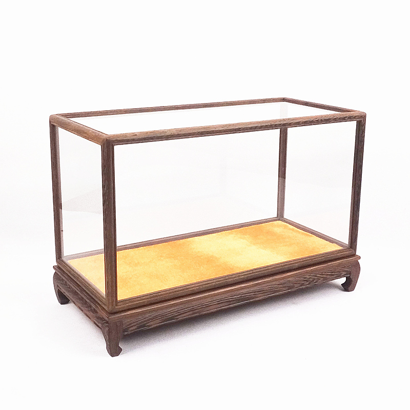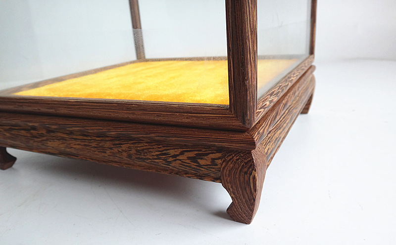 Set up for red wood Carved Antique Craft Gifts Swing Accessories Statue stone Stone Pendulum base Chicken Wings Wood Treasure Cage Display Anti-Dust Glass Hood