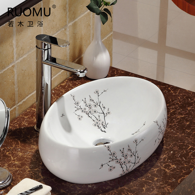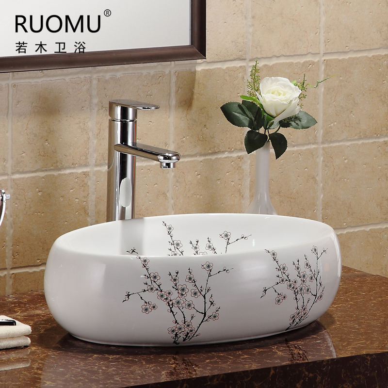 Wakamu ceramic art basin Wash basin Wash basin Powder room table basin Painted luminous plum basin Oval 1238