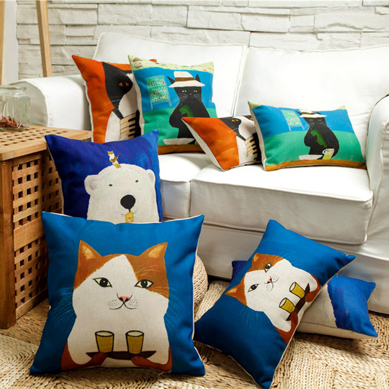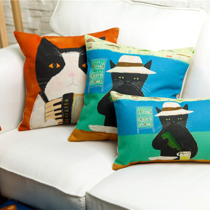 Japan's Pepe Shimada cartoon oil painting kitty cotton linen with pillowcase sofa leaning on a bag for a cushion for a nap