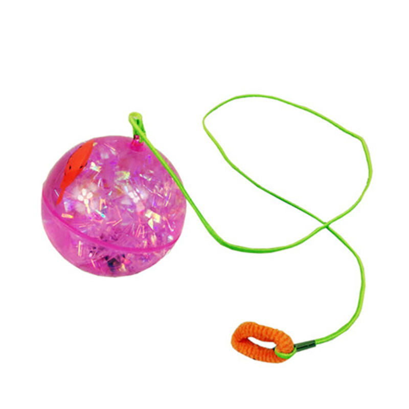 Children butterfly bouncing ball with rope 2pcs 6 5cm luminous jumping ball pig Silicone glitter ball Crystal ball