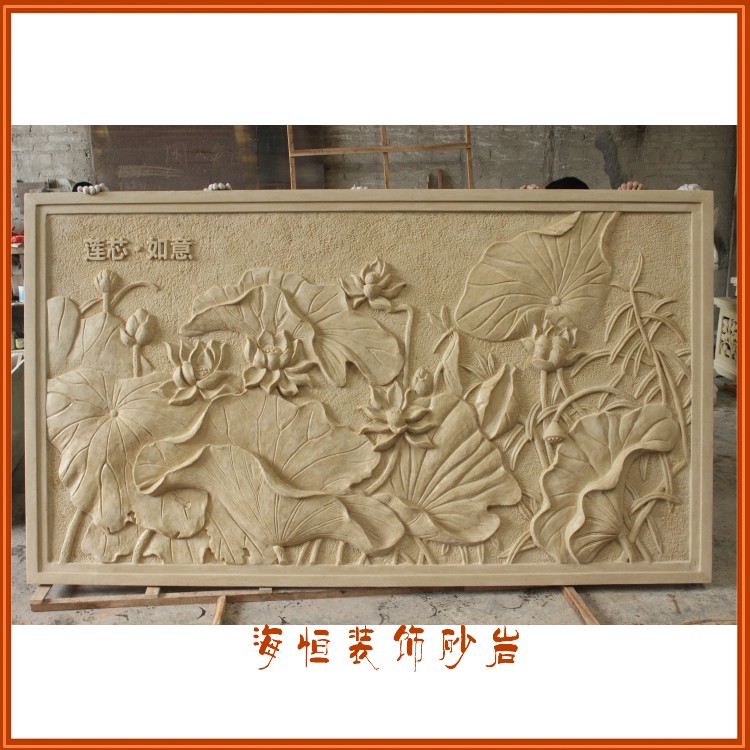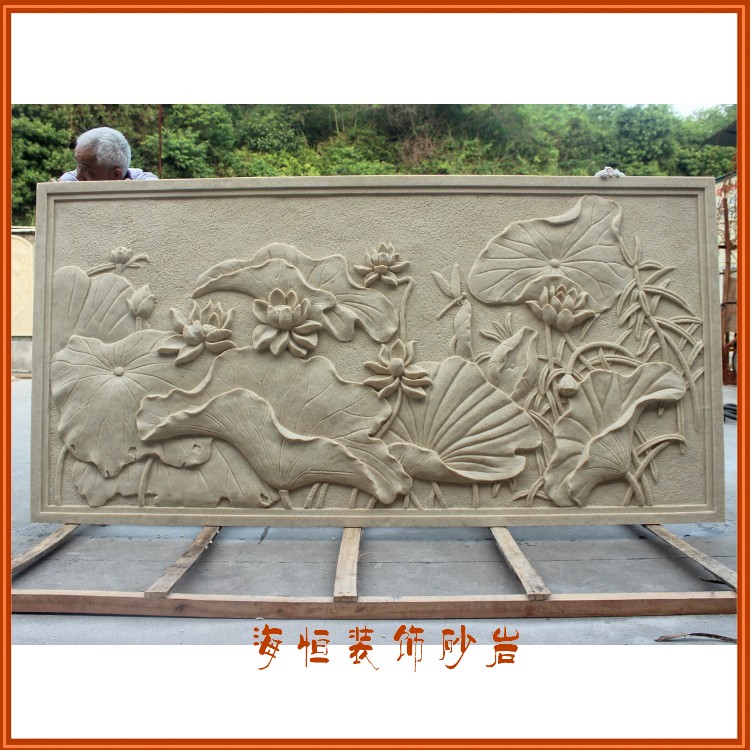 Haiheng art sandstone relief plant mural background wall Chinese sandstone painting indoor and outdoor porch decoration lotus leaf map