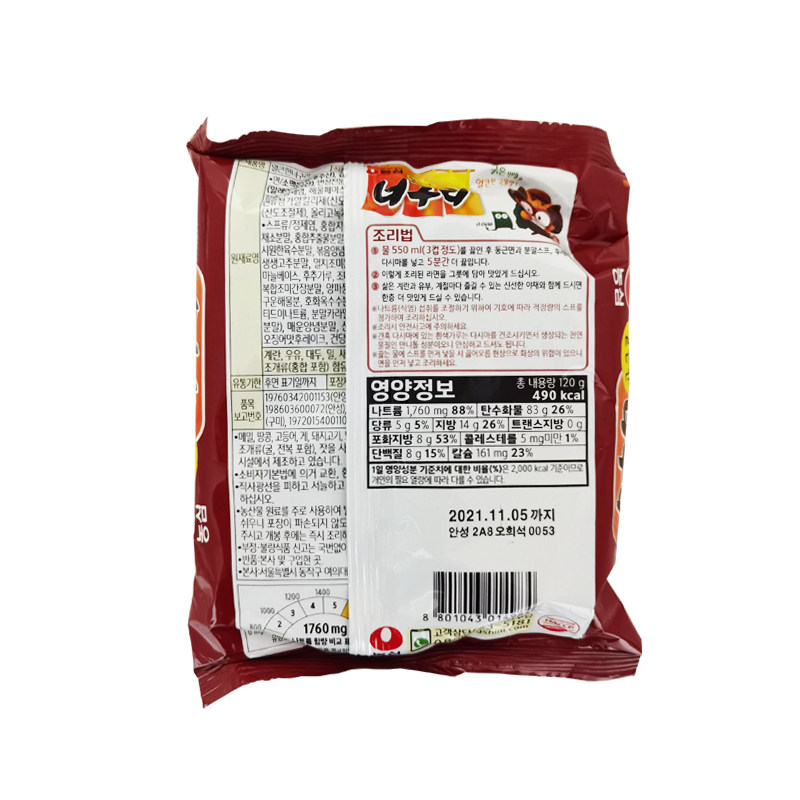 South Korea imported Nongshim little Raccoon spicy udon instant noodles boiled noodles Instant noodles Instant noodles 120g Where is dad going
