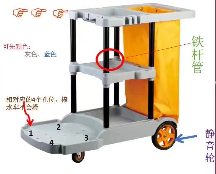 Thicken multi - purpose cleaning debris cart three - layer cart KTV cleaning car with bag cleaning car cleaning car cleaning car