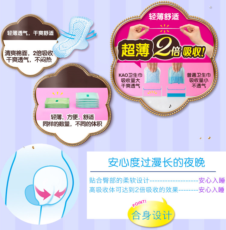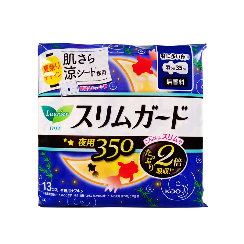Japanese Kao Laurier night wing tampon ultra-thin cotton soft instant inhalation breathless non-fluorescent 35cm 13 pieces