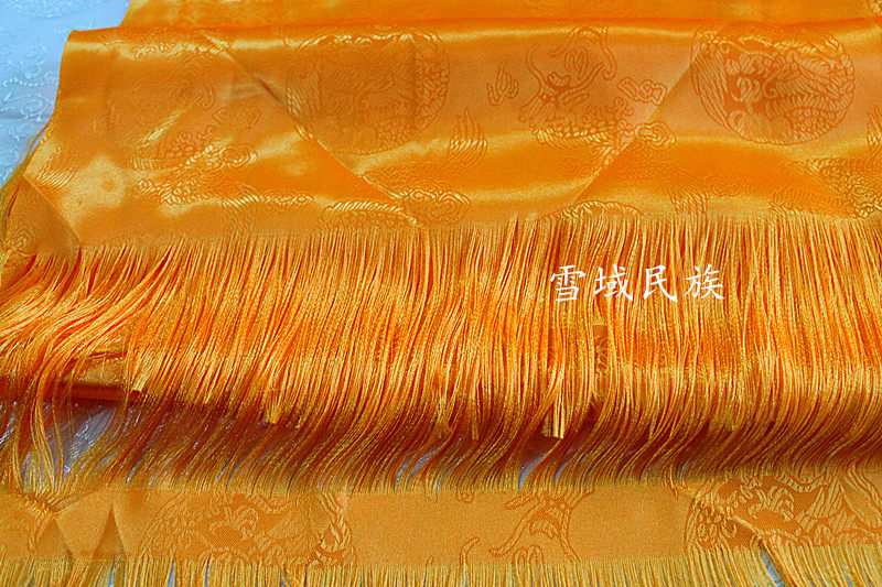 (Factory direct sale) Tibet boutique Hada Jacquard Dragon and Phoenix Hada 156cm*24cm Yellow