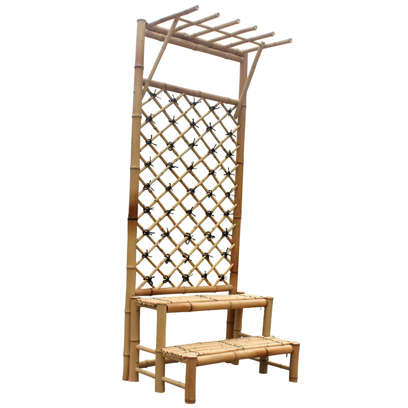 Large multi-layer original bamboo white bamboo succulent flower stand floor-to-ceiling grid bamboo handmade balcony garden hanging basket flower table
