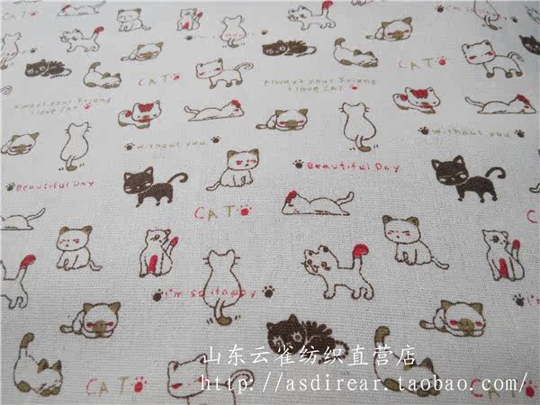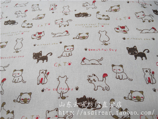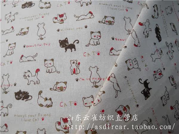 Cotton and linen printed fabric decorative wallpaper tablecloth sofa seat cover curtain diy fabric handmade red heart cat